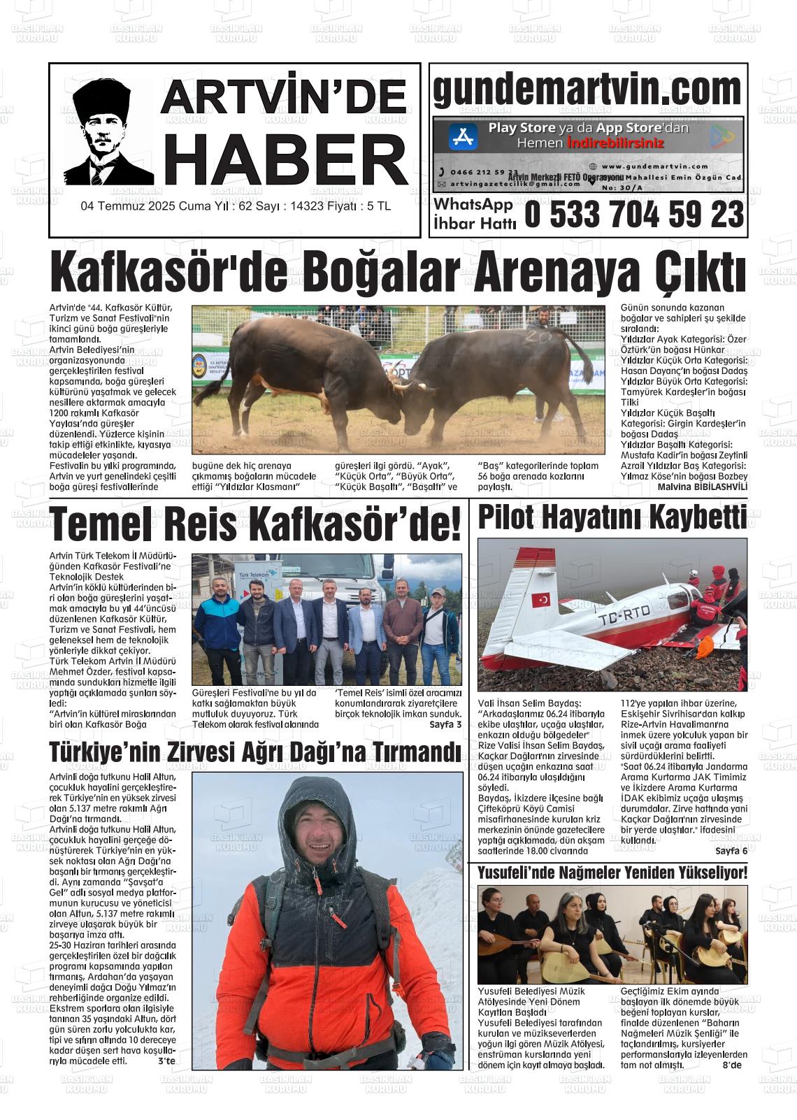 Artvİn Yerel Gazeteleri 13 Aralık 2025, Cumartesi Günü Manşeti