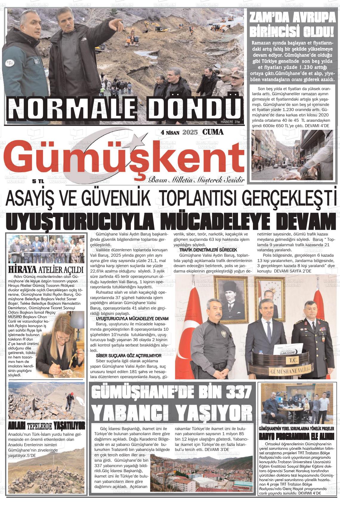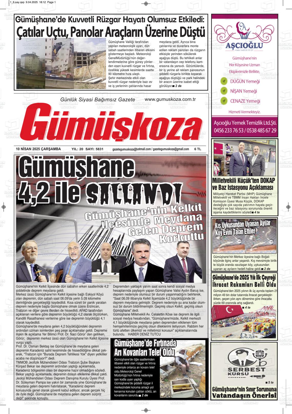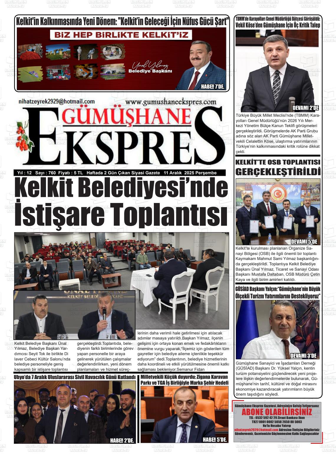 Gümüşhane Yerel Gazeteleri 11 Aralık 2025, Perşembe Günü Manşeti