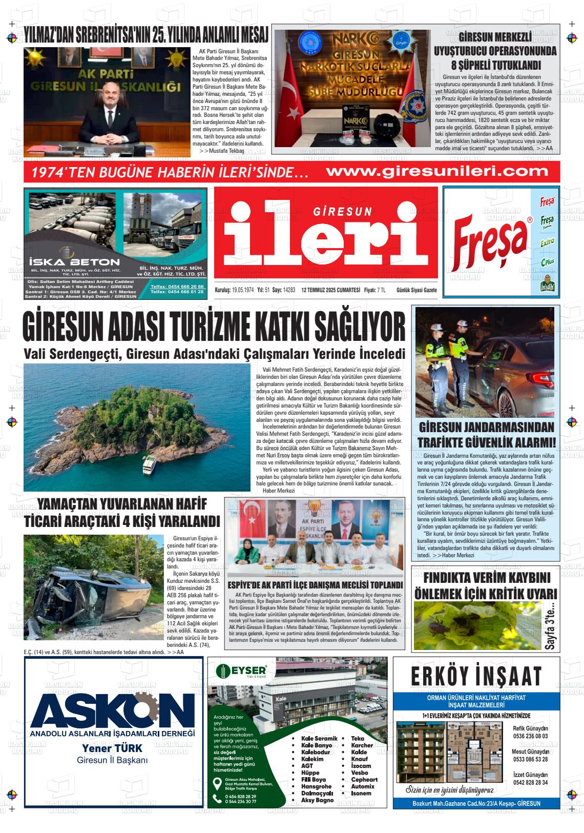 Gİresun Yerel Gazeteleri 23 Şubat 2026, Pazartesi Günü Manşeti