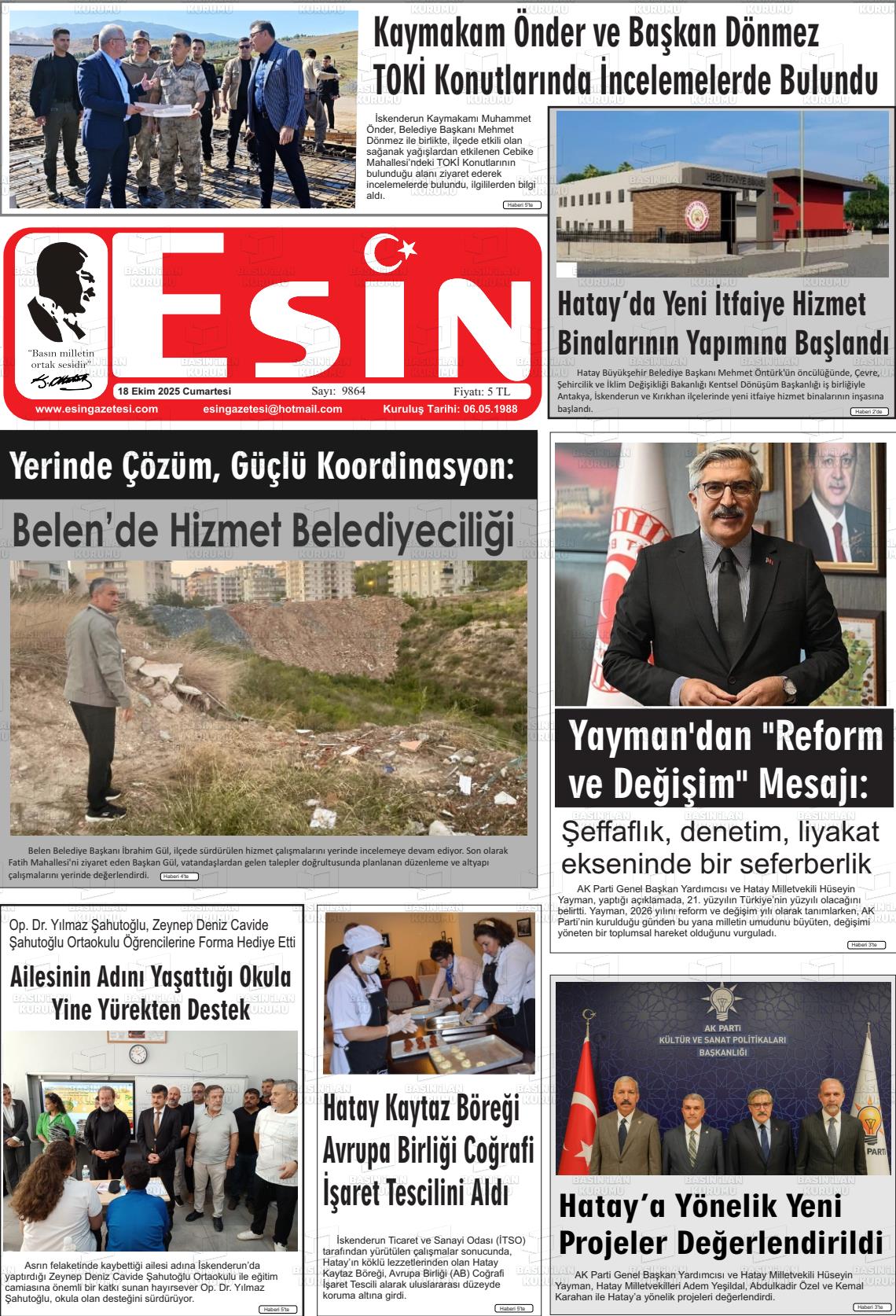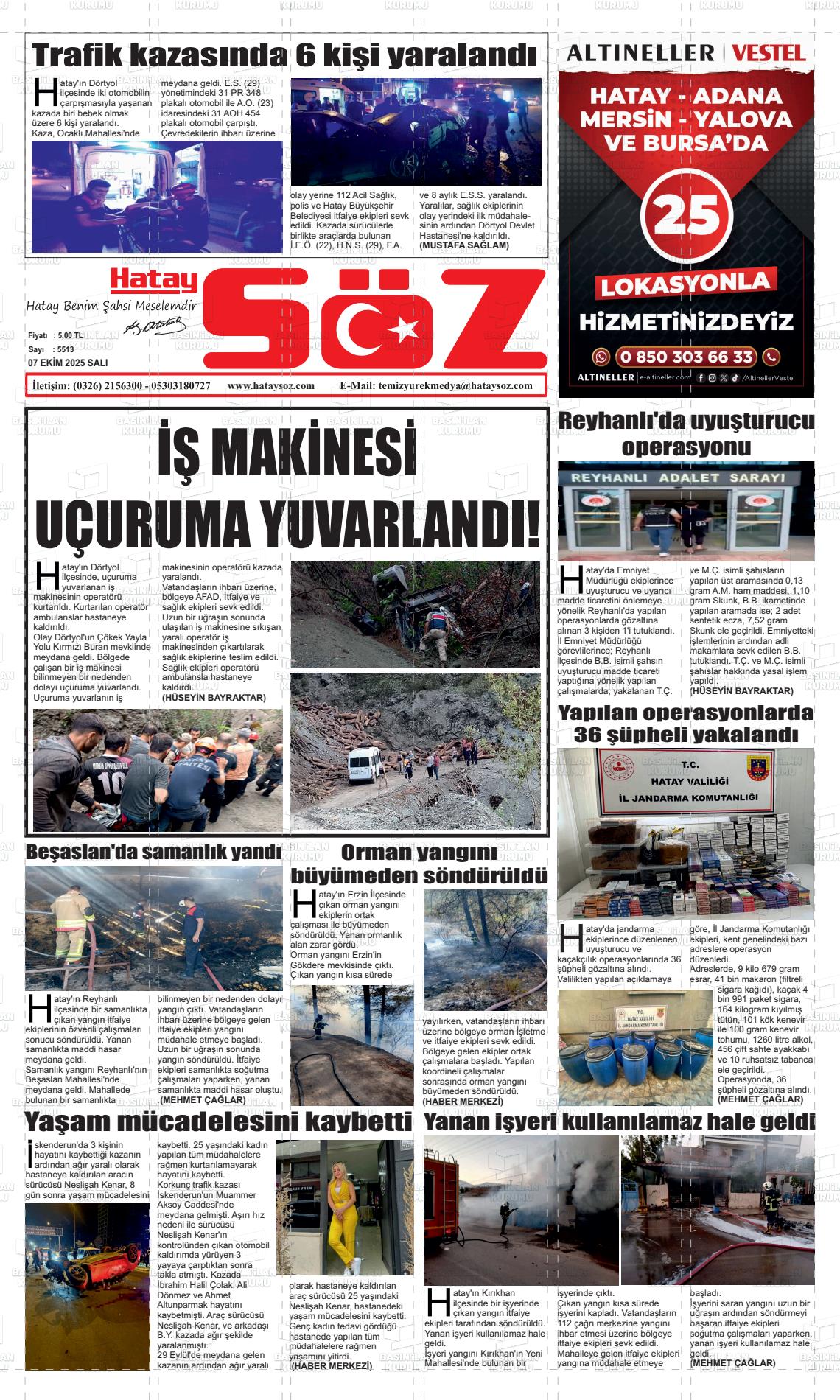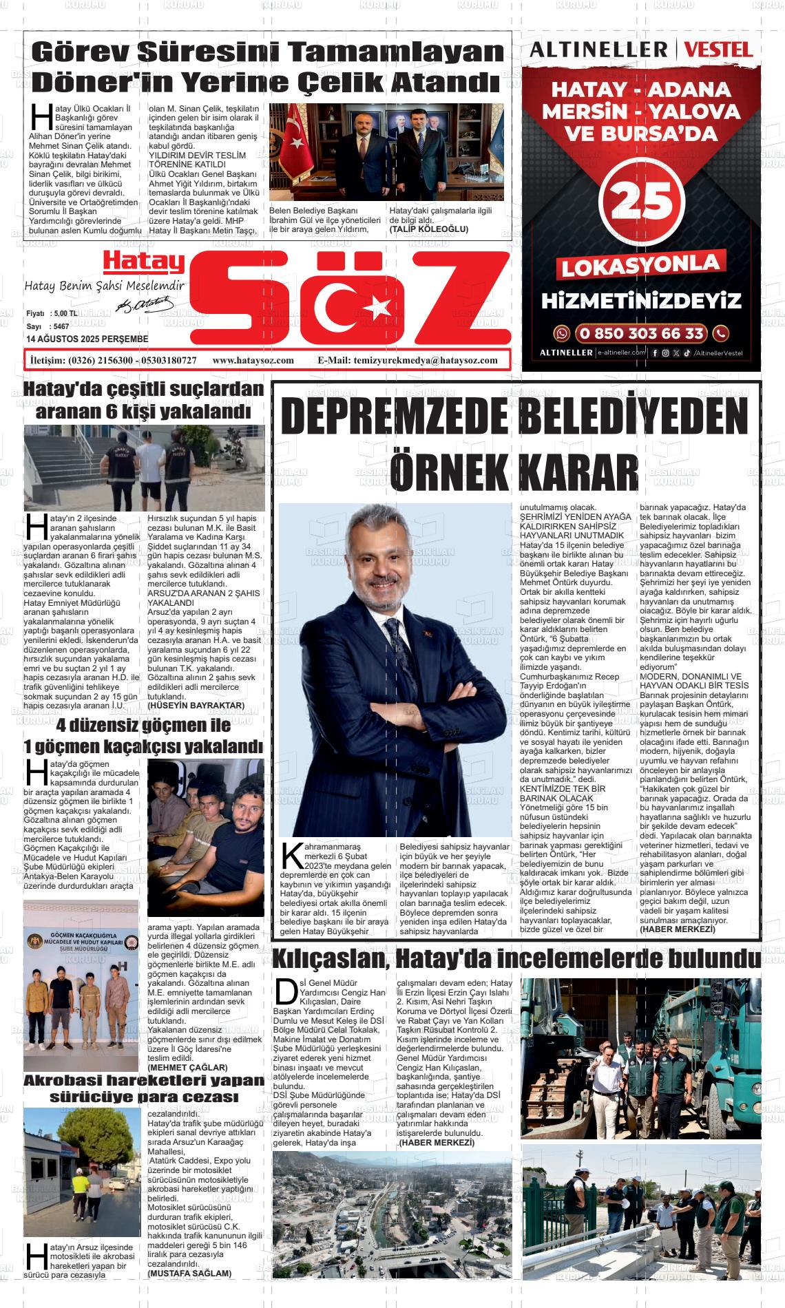 Hatay Yerel Gazeteleri 13 Aralık 2025, Cumartesi Günü Manşeti