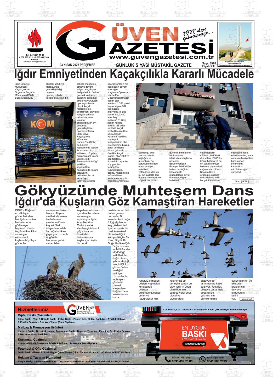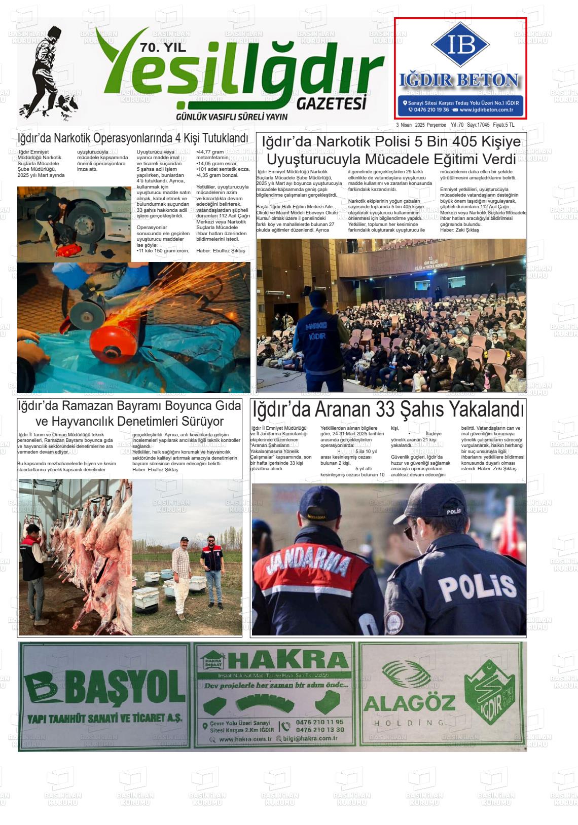Iğdır Yerel Gazeteleri 13 Aralık 2025, Cumartesi Günü Manşeti