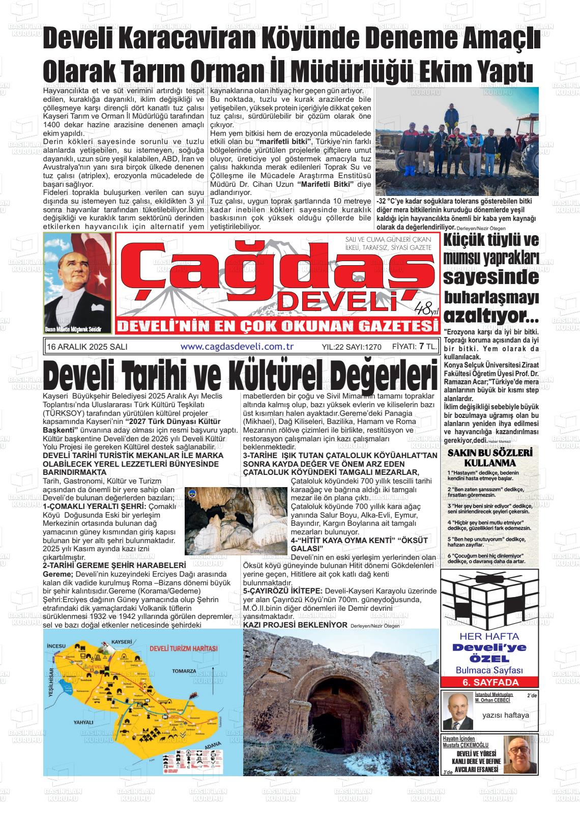 Kayserİ Yerel Gazeteleri 16 Nisan 2026, Perşembe Günü Manşeti