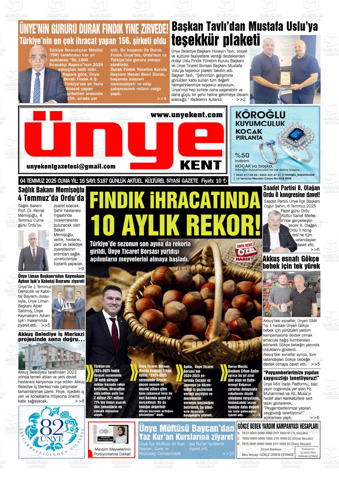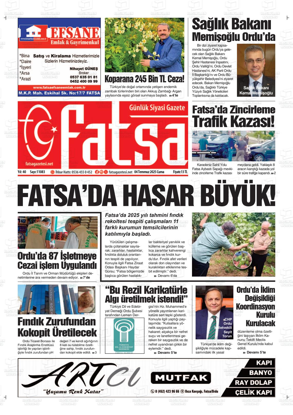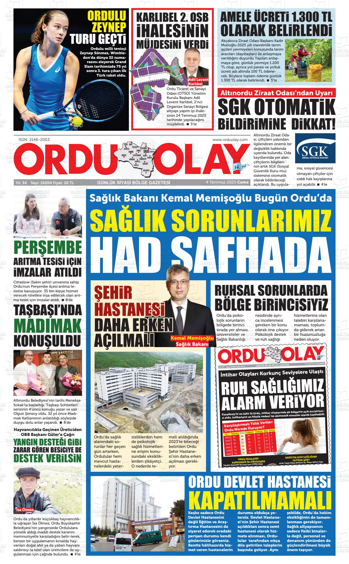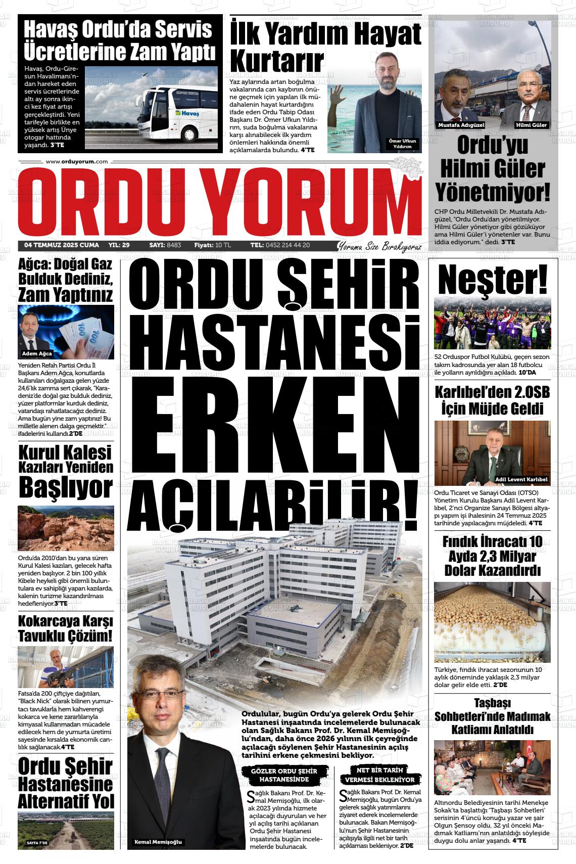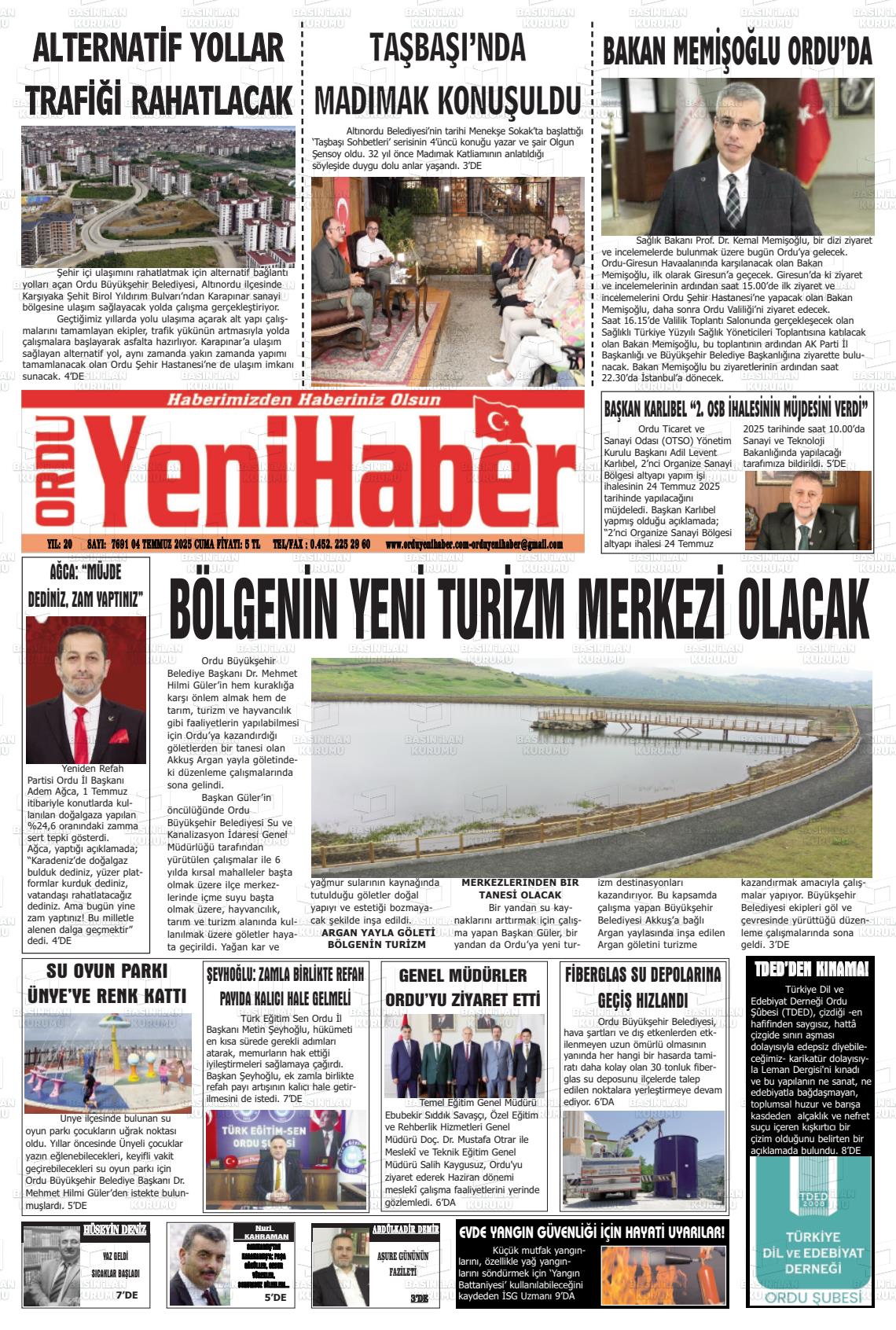 Ordu Yerel Gazeteleri 13 Aralık 2025, Cumartesi Günü Manşeti